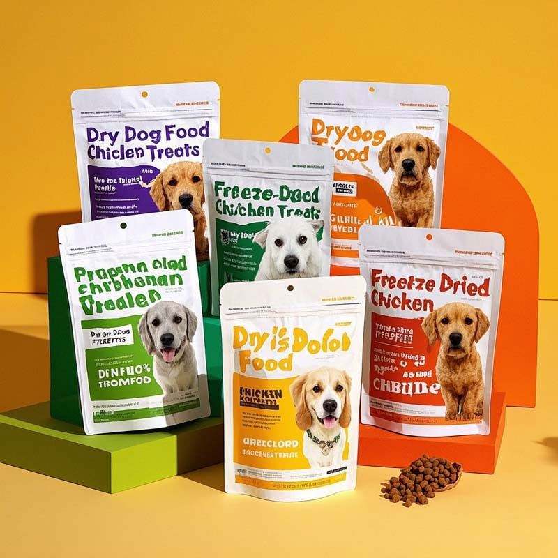 Custom Heavy-Duty Flat Bottom Resealable Zipper Stand-Up Pouch for Pet Food Bulk Plastic Dog Treat Storage Packaging Bag