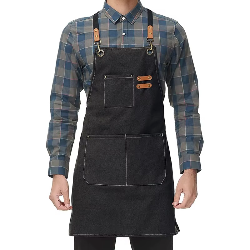 Custom Heavy Duty Waxed Canvas Bib Apron Waterproof Sleeveless Woodworking Tool Pockets Cooling Use