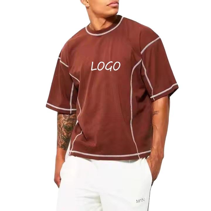 Custom Heavyweight 100%Cotton Contrast Stitching T Shirt Customized High Street Oversize Boxy Fit Tshirts for Men