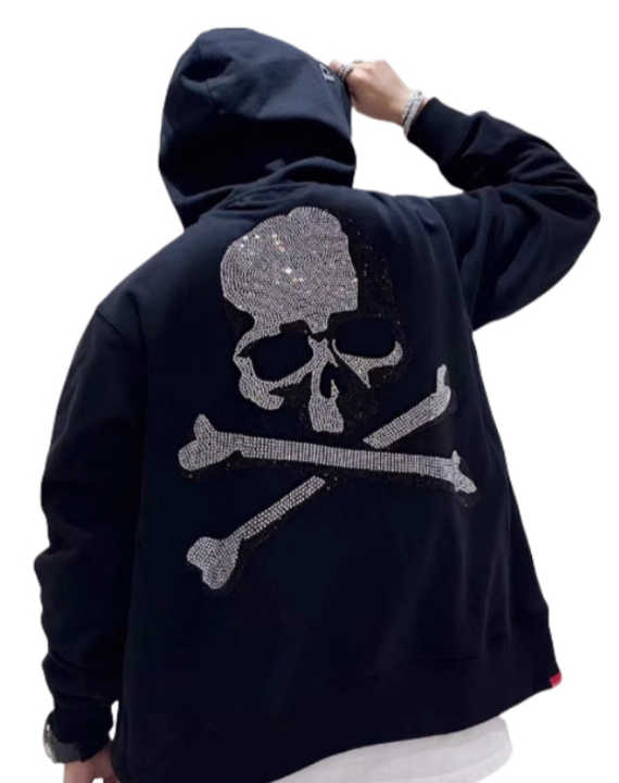 Custom Heavyweight 100% Cotton Retro Streetwear Men's Hoodie with Applique Embroidery, Screen Printing and Rhinestones