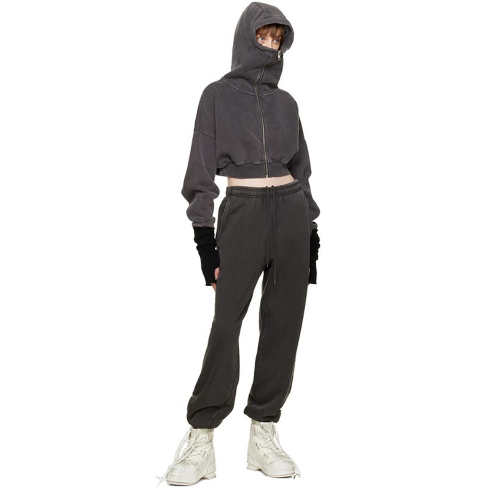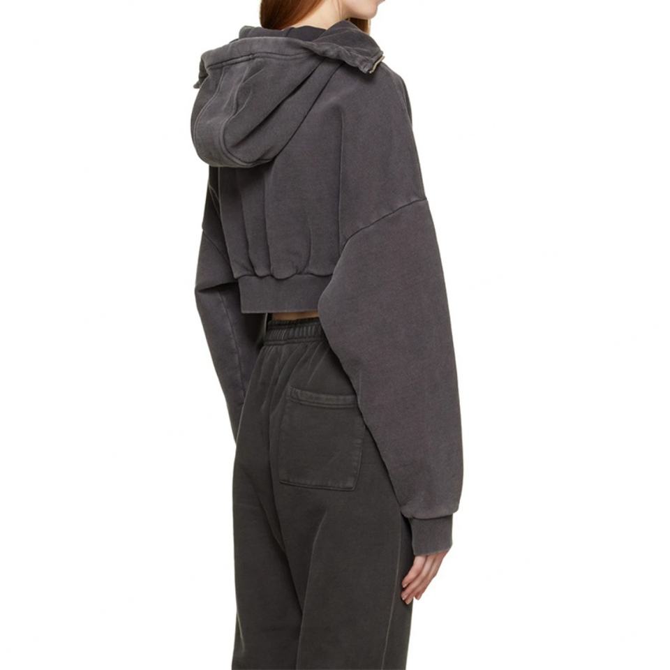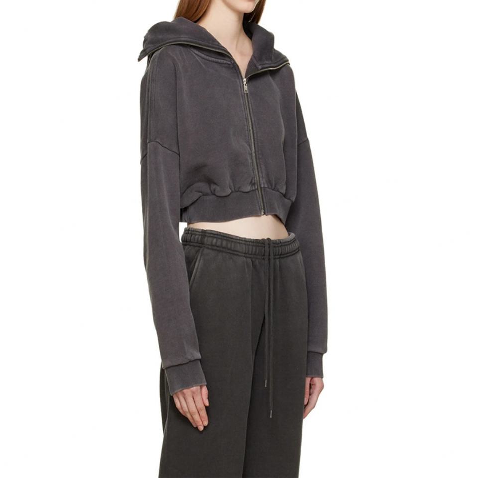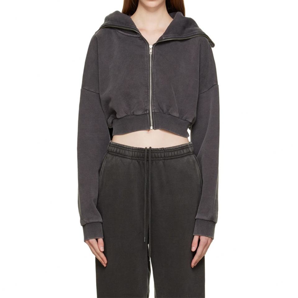 Custom Heavyweight 510 Gsm Thick Cotton Fleece Grey Faded Sweatshirt High Neck Full Zip Cropped Hoodie for Women