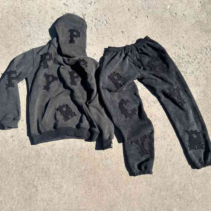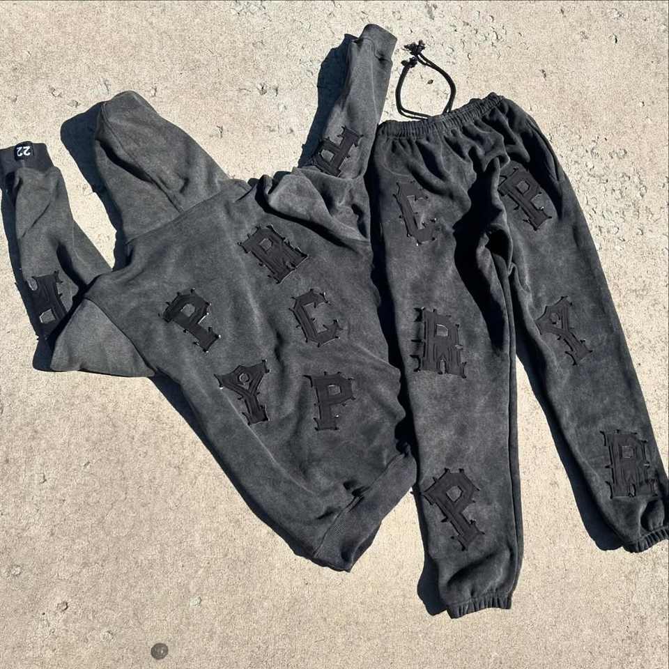 Custom Heavyweight Cotton Embroidered Patches Hoodie Sets Custom Oversized Vintage Wash Hoodie and Sweatpants for Men