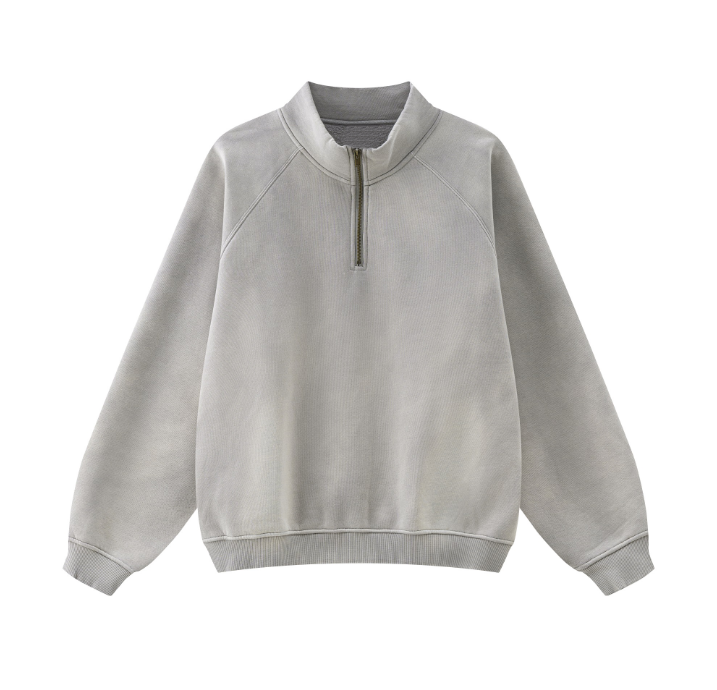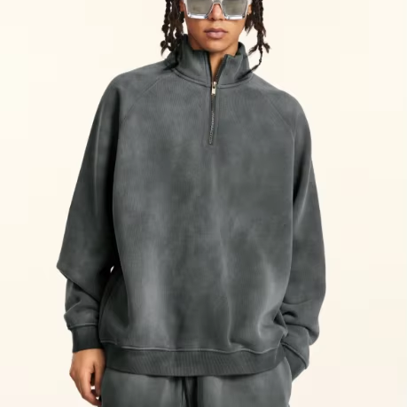 Custom Heavyweight Cotton Fleece Oversized Streetwear Men Fade Half Zip Sweatshirt Men'S 14 Zip Stand Collar Acid Wash Hoodie