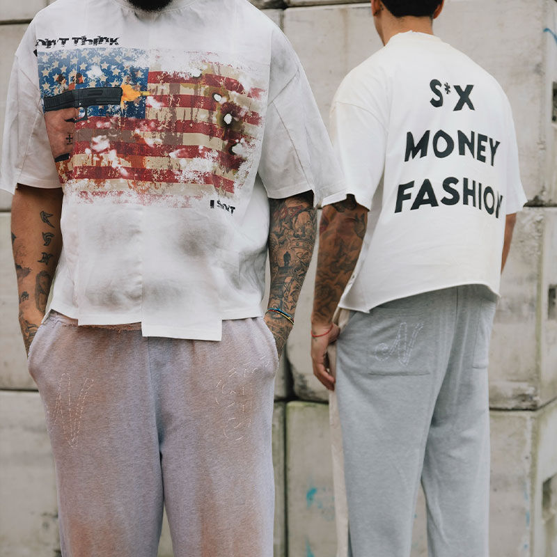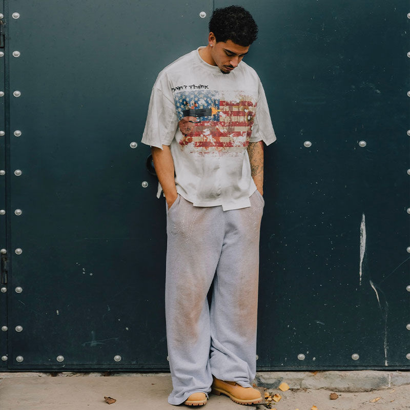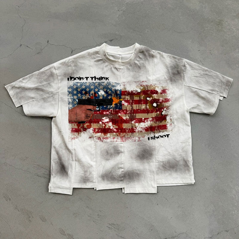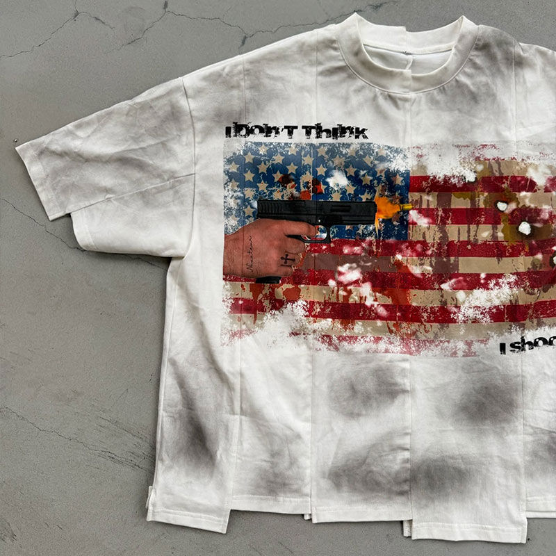 Custom Heavyweight Cotton T Shirt For Men Summer Vintage Sunfaded Wash With Screen Print And Asymmetrical Spliced Graphic Design