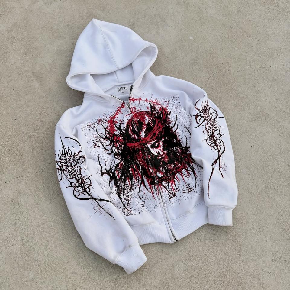 Custom Heavyweight 100% Cotton Winter Hoodies with Custom Silk Screen Printing Distressed Oversized Full-Zip Design