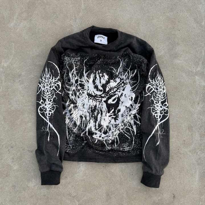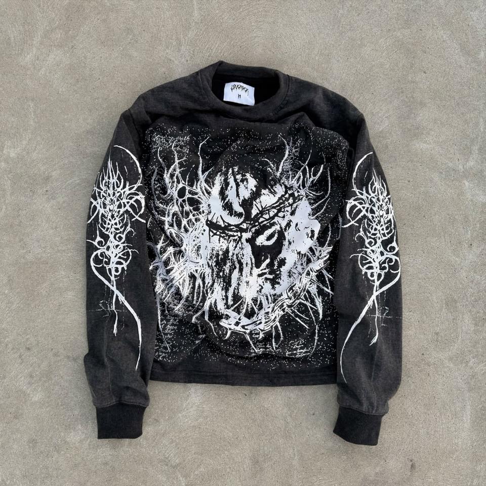 Custom Heavyweight Oversized Drop Shoulder Cotton Long Sleeve T-Shirt for Men with Streetwear Graphic Ripped Details tshirts men