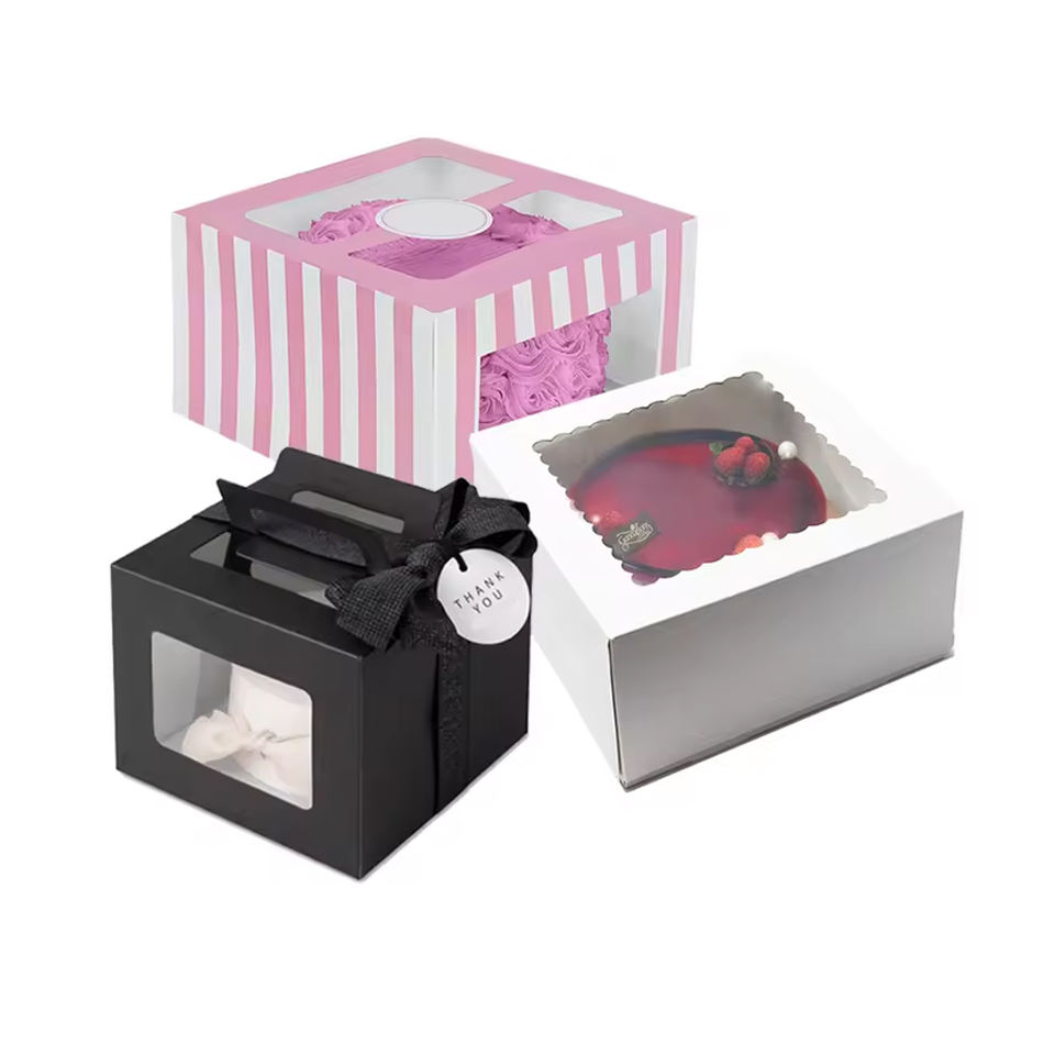 Custom High-End Portable Rigid Cake Box for Birthday Wedding Celebration Premium Bakery Packaging with Window and Gold Foiling