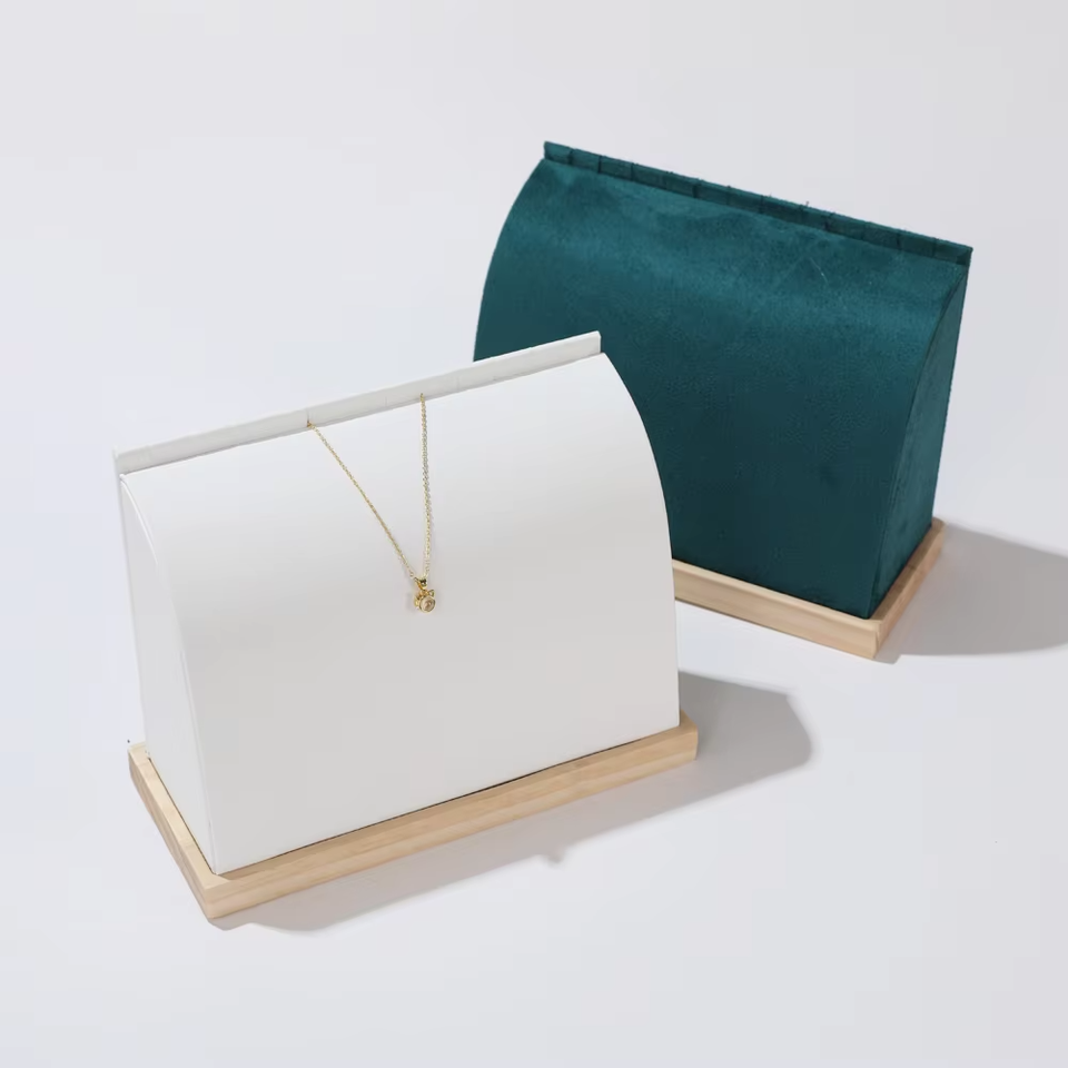 Custom High End White Wooden Suede/PU Luxury Half Pendant Necklace Jewelry Display Stand for Jewelry Stores-Elequeen EQ002