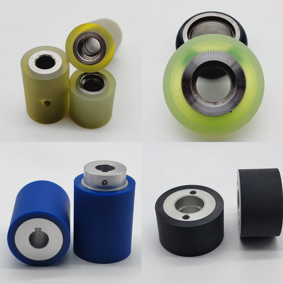 Custom High-Load Double-Bearing Silicone-Coated Rollers Wear-Resistant Unpowered PU Rubber Metal-Core Wheels