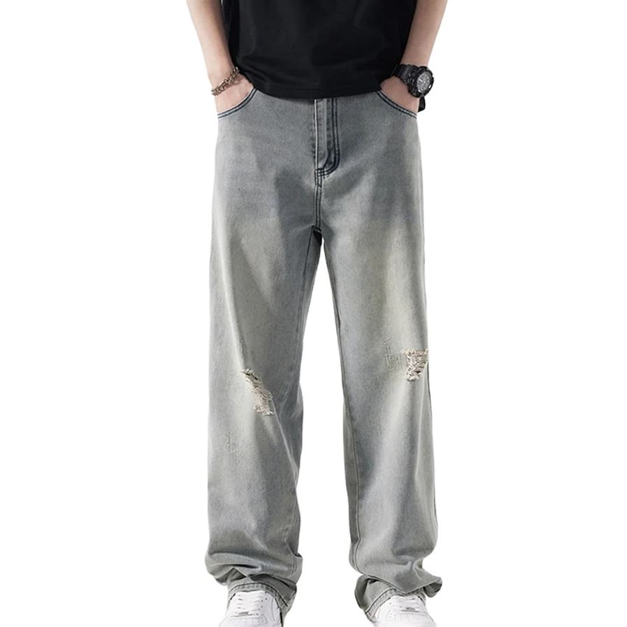 Custom High Quality 100% Cotton Acid Wash Denim Jeans Pants Streetwear Fashion Ripped Baggy Denim Men Distressed Jeans Pants