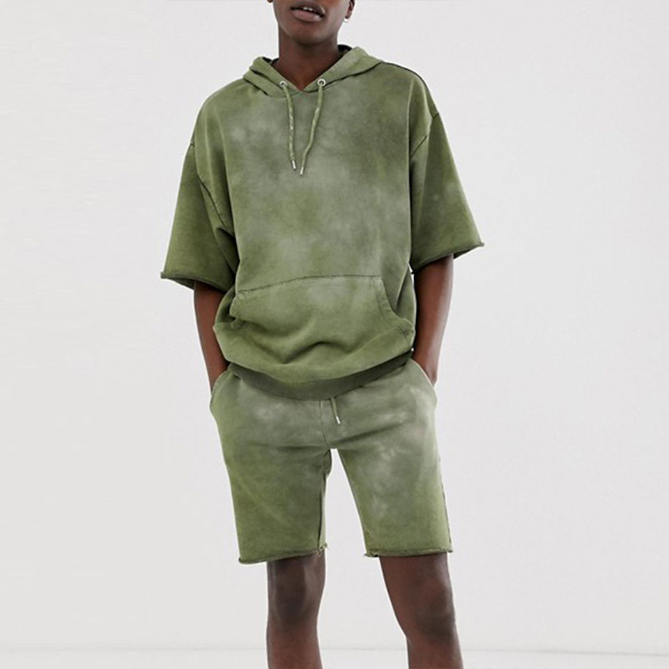 Custom High Quality Acid Washed design men short sleeve hoodie & shorts drop shoulder casual summer Shirt Set Tracksuit For Men