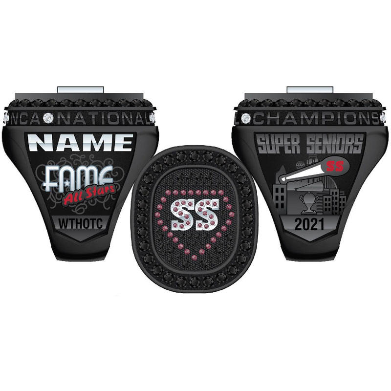 Custom High Quality Alloy Crystal Rhinestone Heart Shape Unisex Champion Ring Rose Gold Plated Personalized