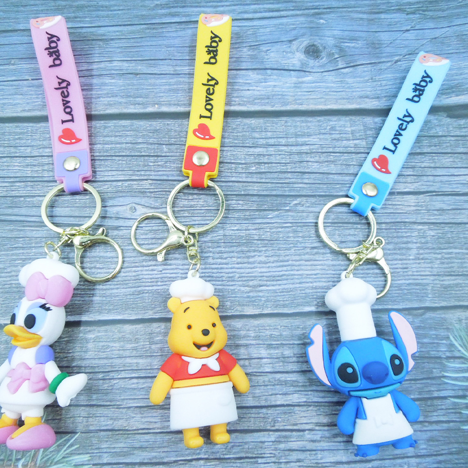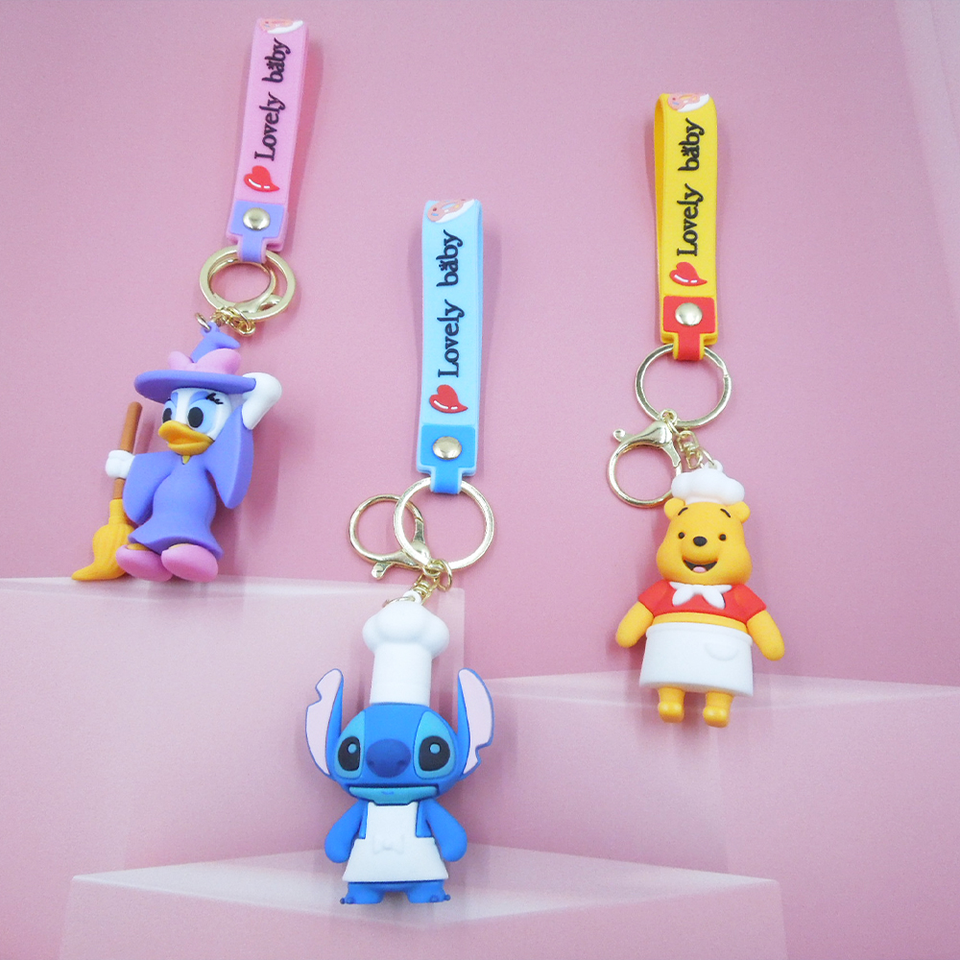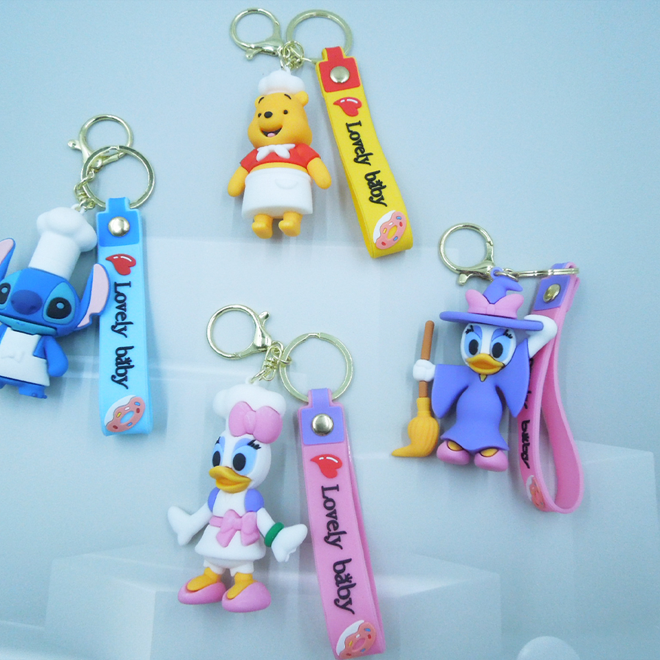 Custom High Quality Bag Pendant Car Cartoon Anime Key Chain PVC Rubber Luxury Lovely Key Ring With Wristband for Decoration