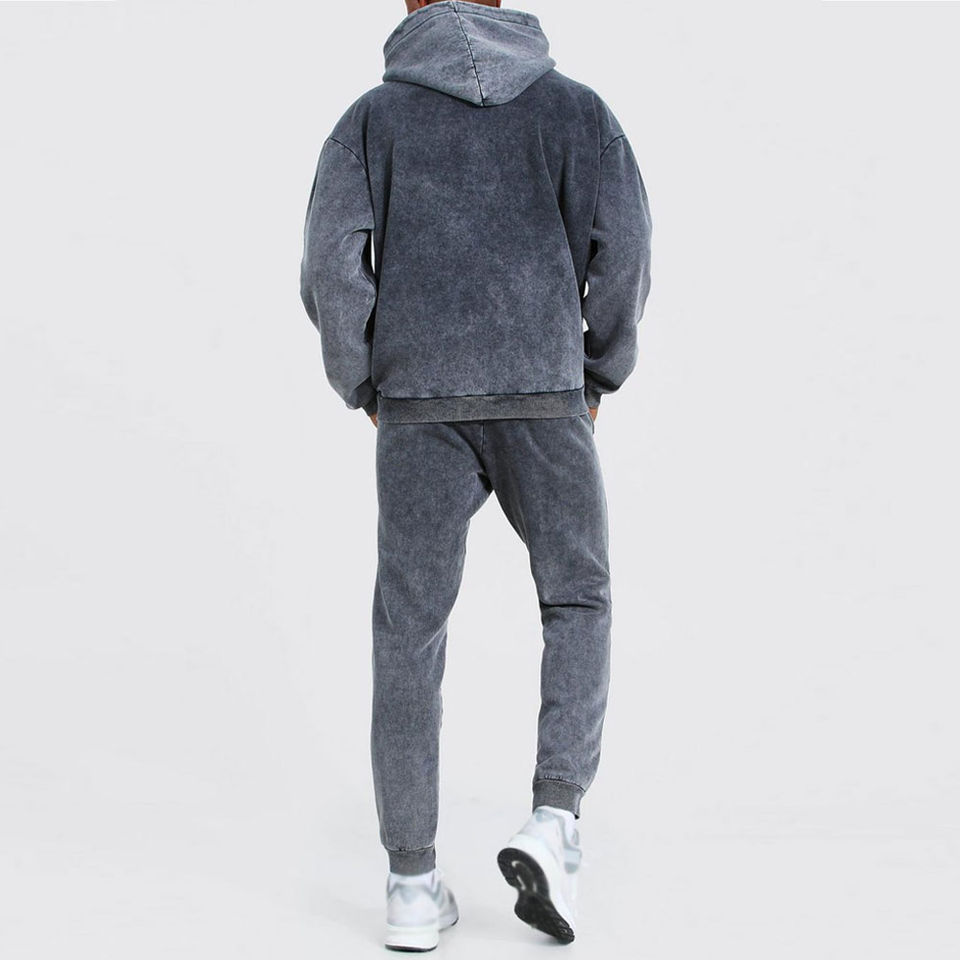 Custom High Quality Breathable Winter Hooded Solid Acid Wash Tracksuit 100% Cotton for Men's Customized Colors