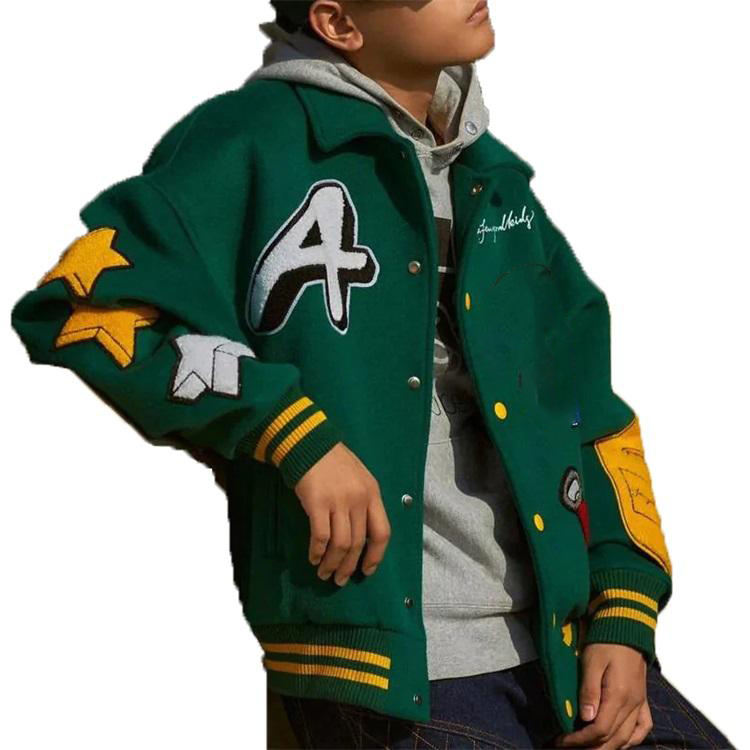 Custom High Quality Chenille Patch Green Vintage Hip Hop Windproof Eco-Friendly Varsity Jacket for Men Baseball