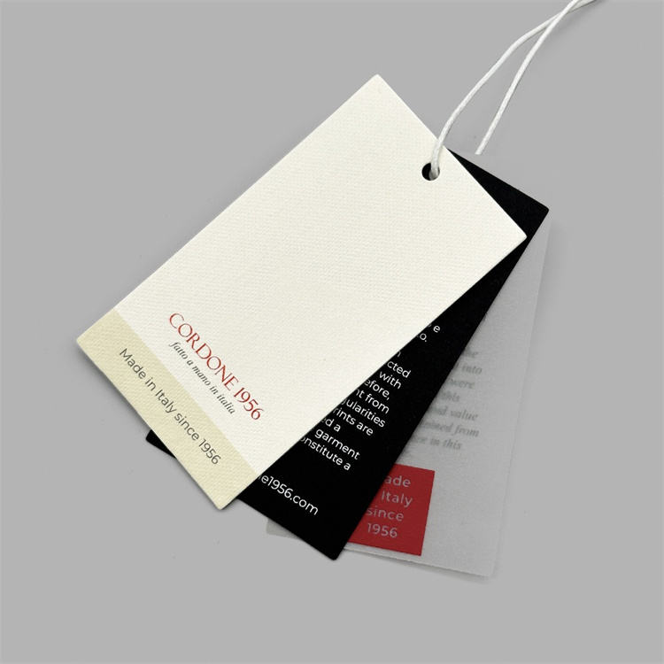High Quality Custom Waterproof Paper Hang Tags Gold Stamp Die Cuts Barcode Holographic Anti-Counterfeit Features UV Clothing