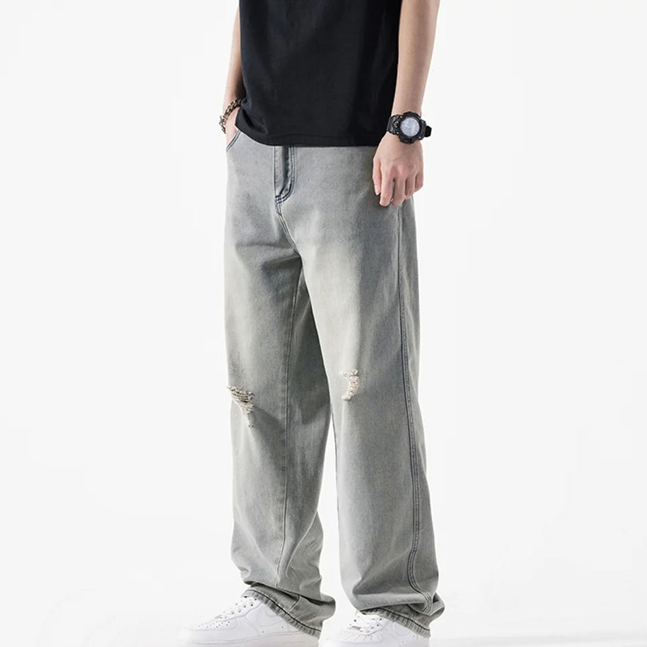 Custom High Quality Cotton Denim Jeans Pants For Men Streetwear Fashion Washed Ripped Baggy Denim Men's Jeans Pants