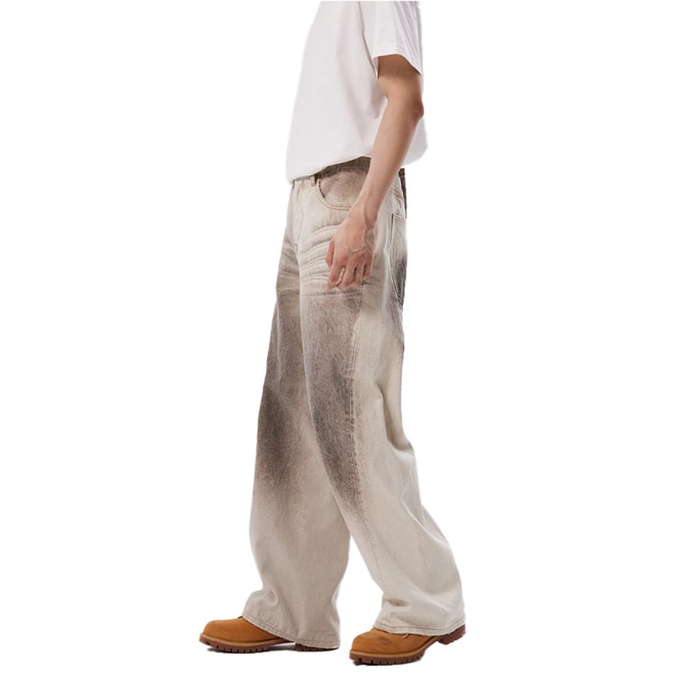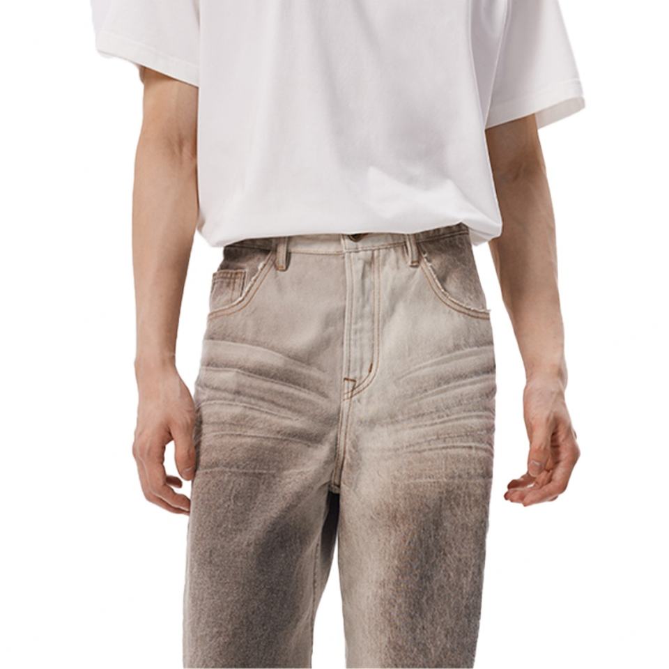 Custom High Quality Cotton Slim Straight Fit Jeans Trouser for Men Streetwear Khaki Vintage Dirty Wash Men's Denim Pants
