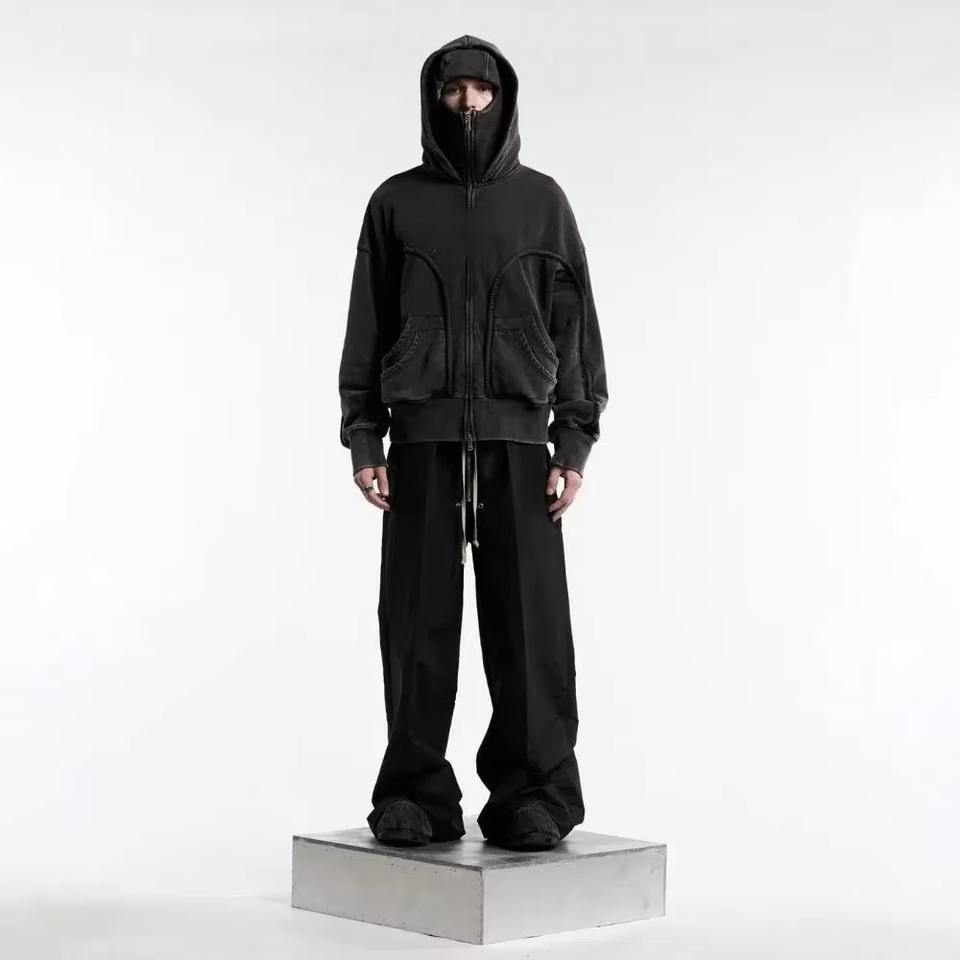 Custom High Quality Embroidery Double Hooded Ninja Pullover Plus Size Heavyweight Fleece Full Zip Balaclava Winter Hoodies Men