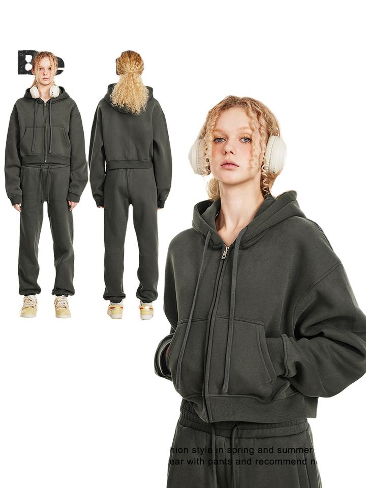 Custom High Quality 100% Cotton Fleece Running Sportswear Zipper Hoodies Jacket Sweatpants 2 Piece Set Men's Tracksuits