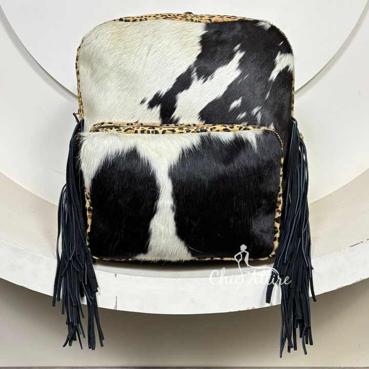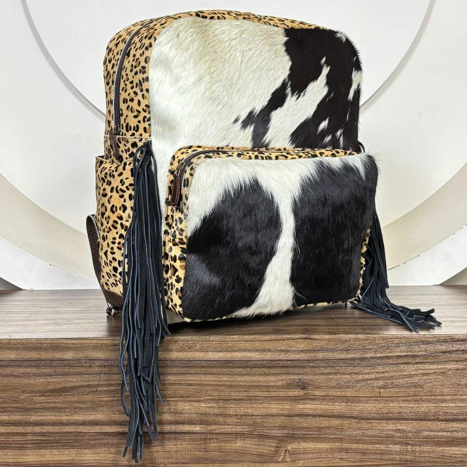 Custom High Quality Genuine Cowhide Leather Fringe Backpack Hair-on Hide Leopard Print Boho Diaper Bag Western Style Travel Bags