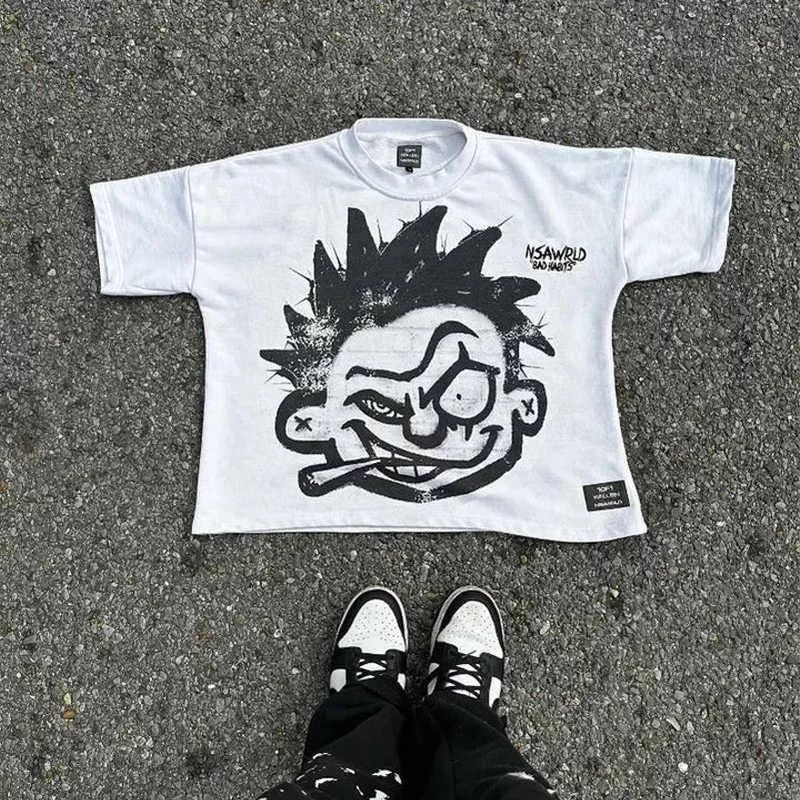 Custom Heavyweight 100% Cotton T-Shirt Oversized Vintage Boxy Fit Cropped Men's Shirt with Screen Print Graphics