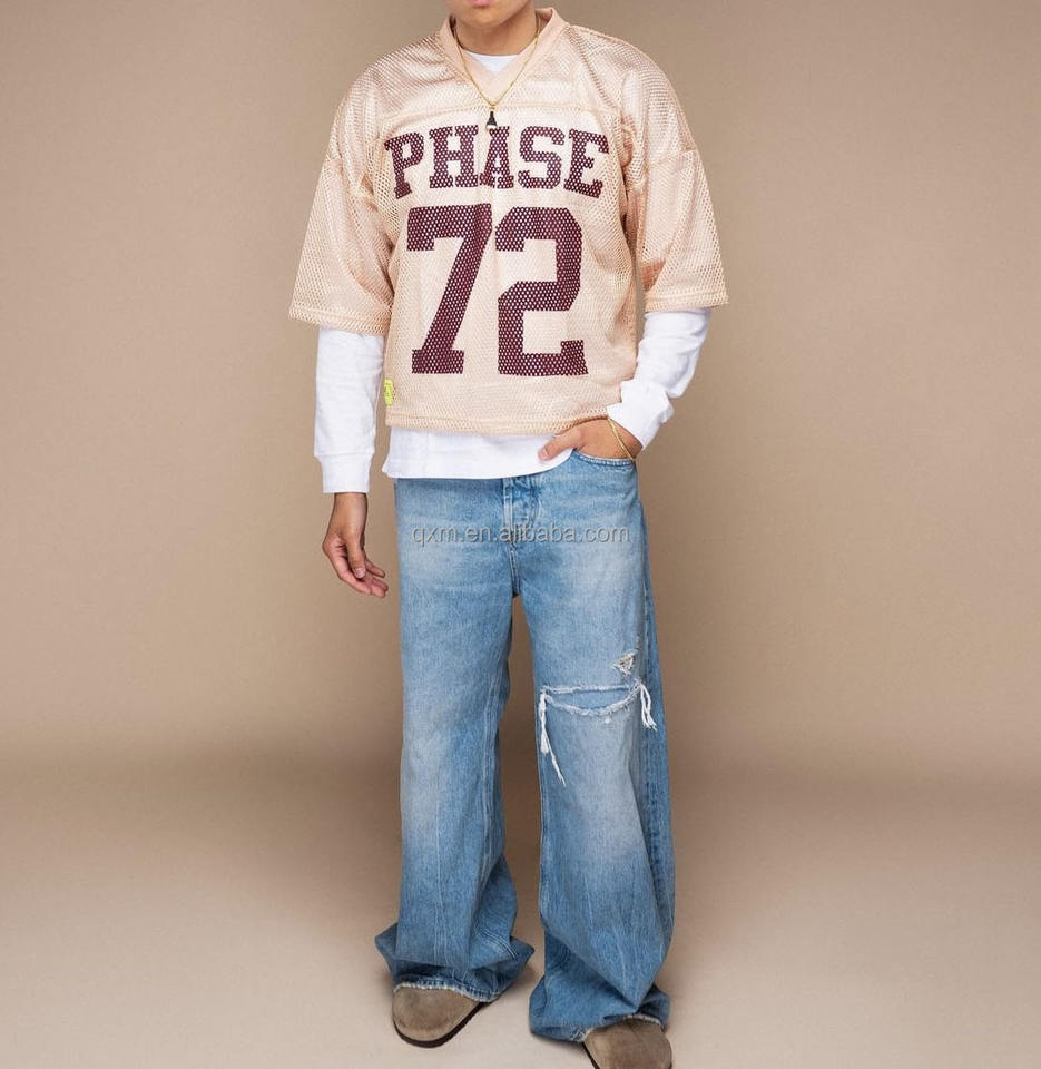 Custom High Quality Hip Hop Breathable Eco-Friendly Printed Oversized Boxy Football Soccer Cropped Mesh Jersey See-through