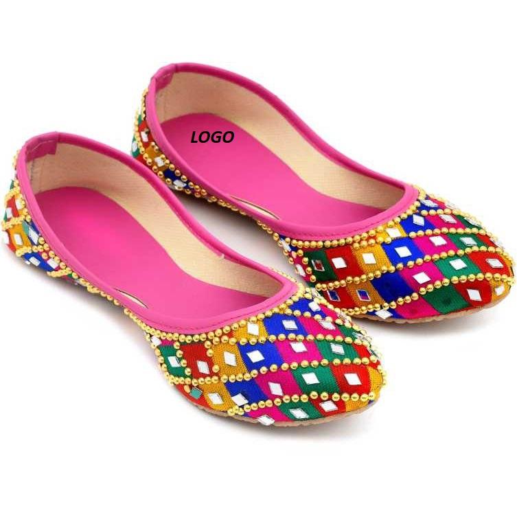 Custom High Quality Leather Sole Flat Plain Red Color Khussa Shoes Indoor Casual Party Wear Punjabi Jutti Pakistani Women Khussa