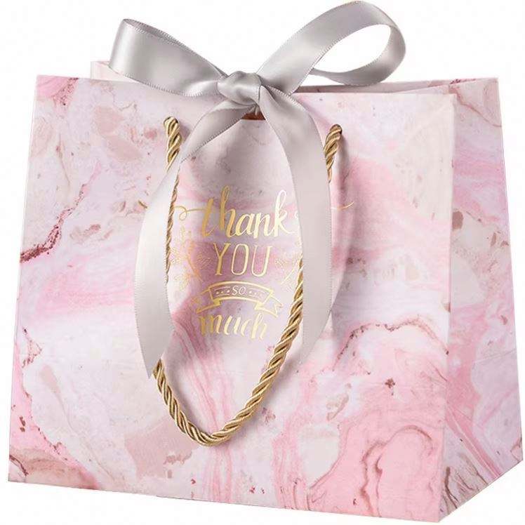 Custom High Quality Luxury Style Coated Cardboard Paper Bag with Handles Recycled Take-Away Ribbon for Supermarket Use
