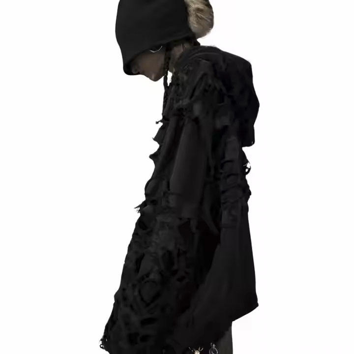 Custom High Quality Luxury Winter Hoodie Wasteland Punk Style Ripped Vintage Washed Fleece Eco-Friendly Breathable Mens