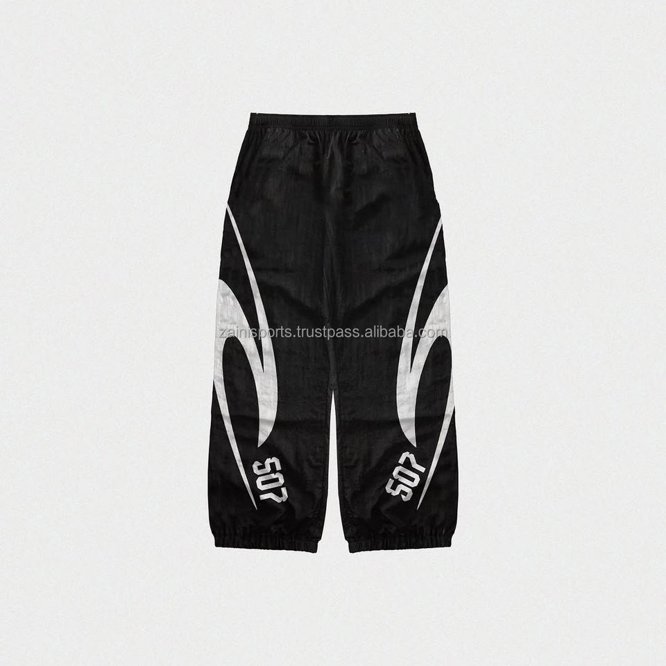 Custom High Quality Man Black Loose Oversize Zipper Open Bottom Baggy Windbreaker Nylon/Polyester Windbreaker washed men's pants
