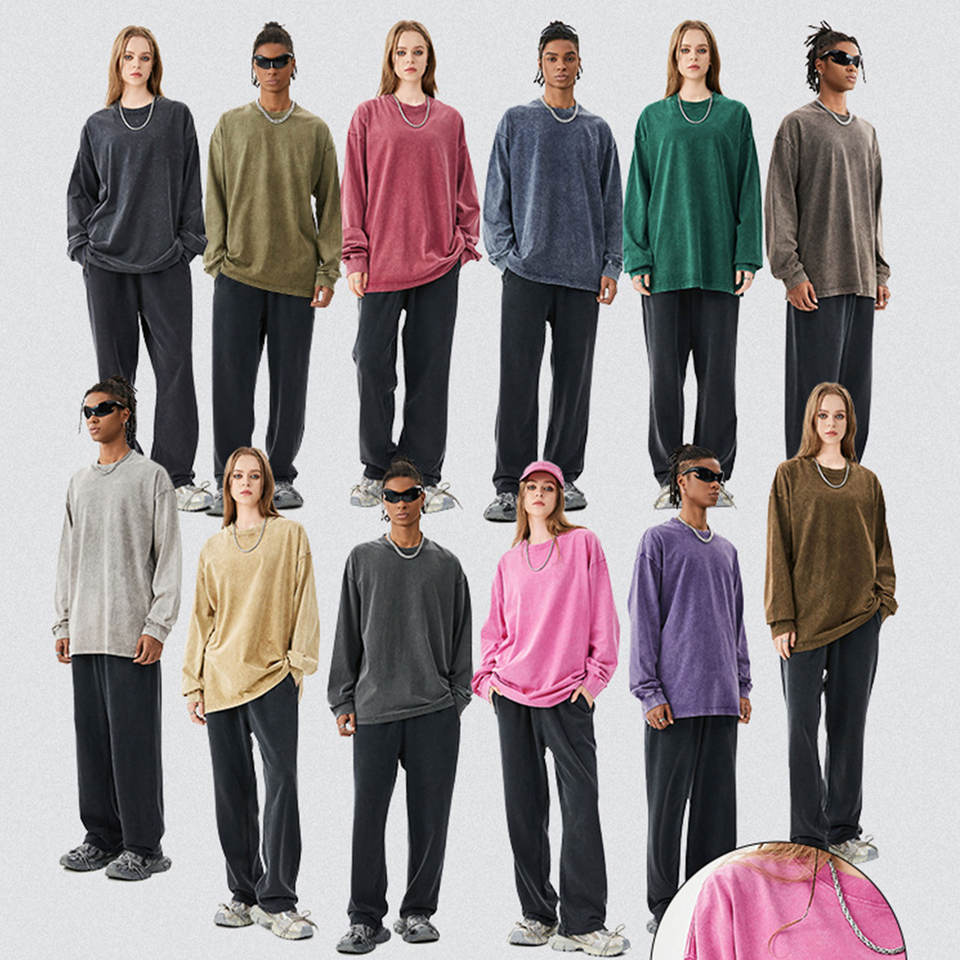 Custom High Quality Men Heavyweight Cotton Longsleeve t Shirt Printing Oversize Black Streetwear Boys T-shirts Manufacturers