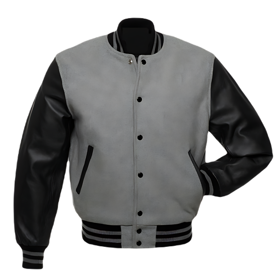Custom High Quality Men's College Style Wool Blend Canvas Varsity Jacket Stand Ribbed Trim Snap Button Closure Winter