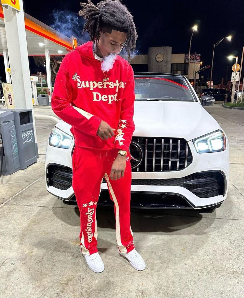 Custom High Quality Men's Red Stacked Fleece Tracksuits Casual Streetwear Hoodie Pants Set Zip Contrast Hood Faded Distressed