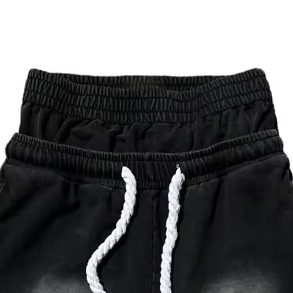 Custom High Quality 100% Cotton Eco-Friendly Wash Sun Faded Sweat Shorts Jogging Vintage Rhinestone Double Waisted Men's Shorts
