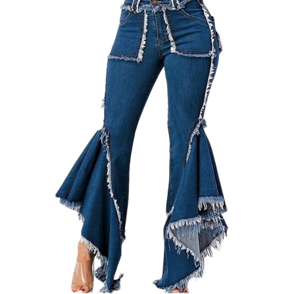 Custom High Rise Frayed Hem Bell Bottom Flare Denim Bell Bottom Flare Denim Pants Woman Designer Jeans