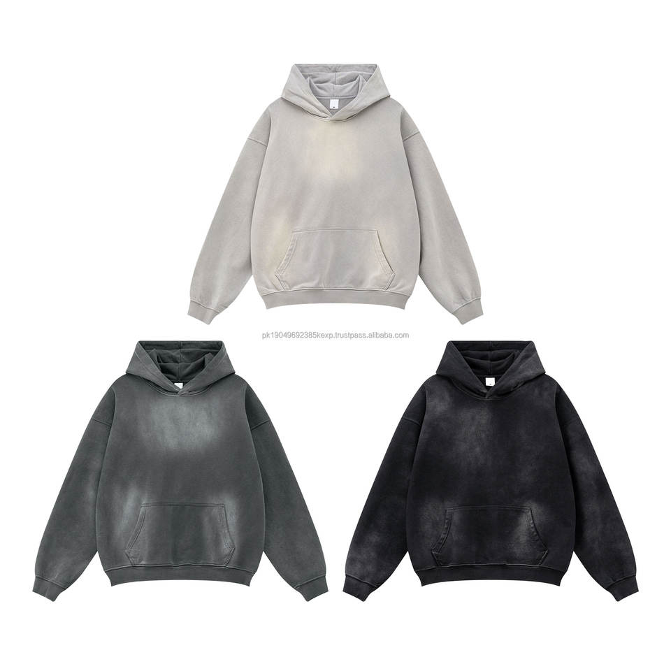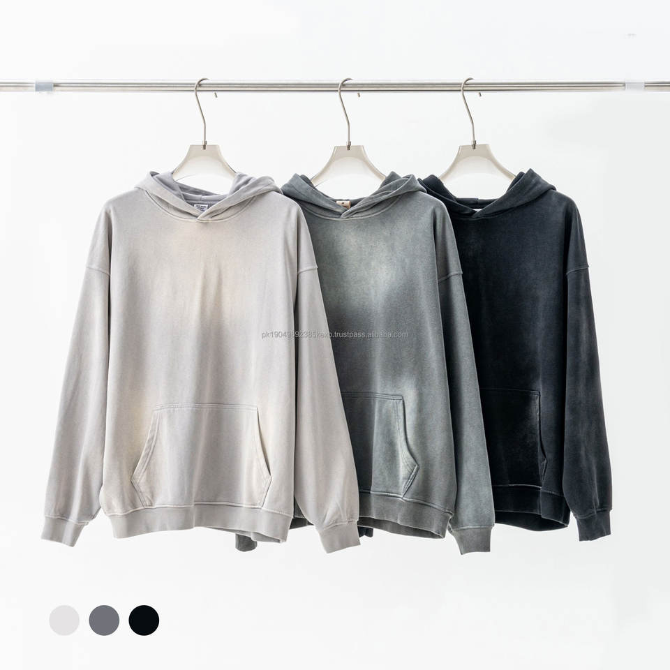 Custom High Street 370GSM Men's Monkey Washed Hooded Hoodie Distressed French Terry Vintage Wash Oversized Hoodie for Men