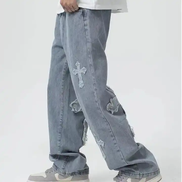 Custom High Street Colored Jeans Fashion Street Hip Hop Mid Rise Baggy Jeans Trousers Men's Denim Pants