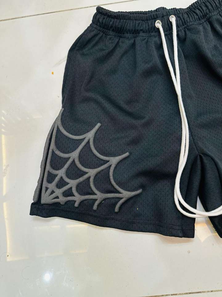 Custom High Street Mesh Hoopers Shorts Puff Print Solid Color Long Drawstring 5 Inches Inseam Eco-Friendly Metal Tips Made