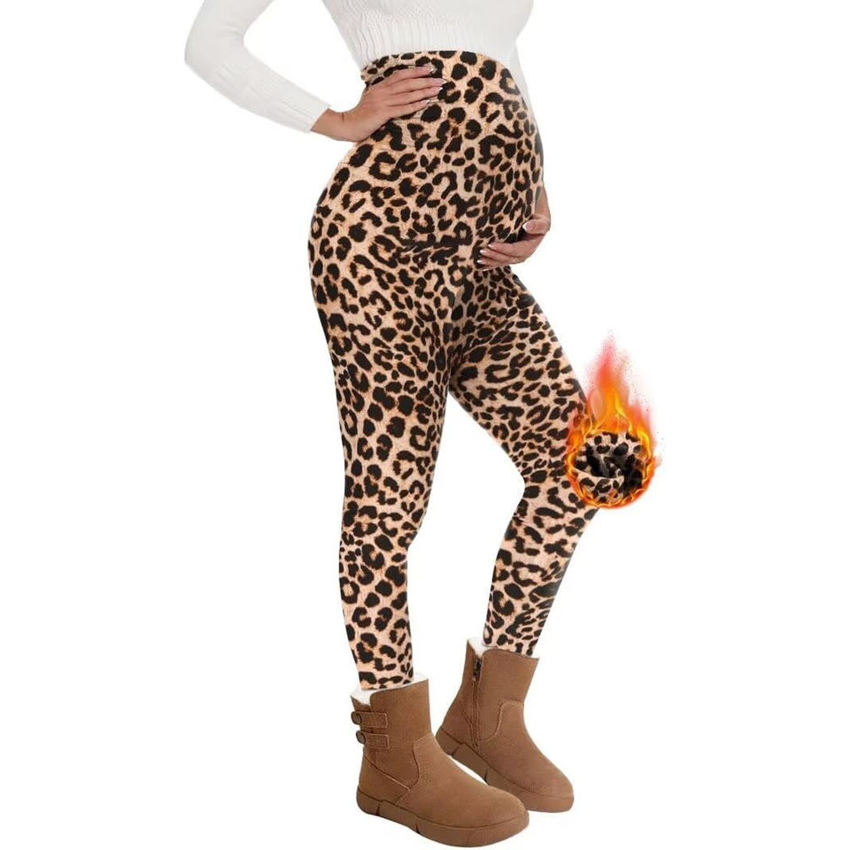 Custom High Waist Winter Fitness Wear Women's Pregnant Fleece Leggings Printed Thermal Customized Logo Pregnancy Maternity Pants