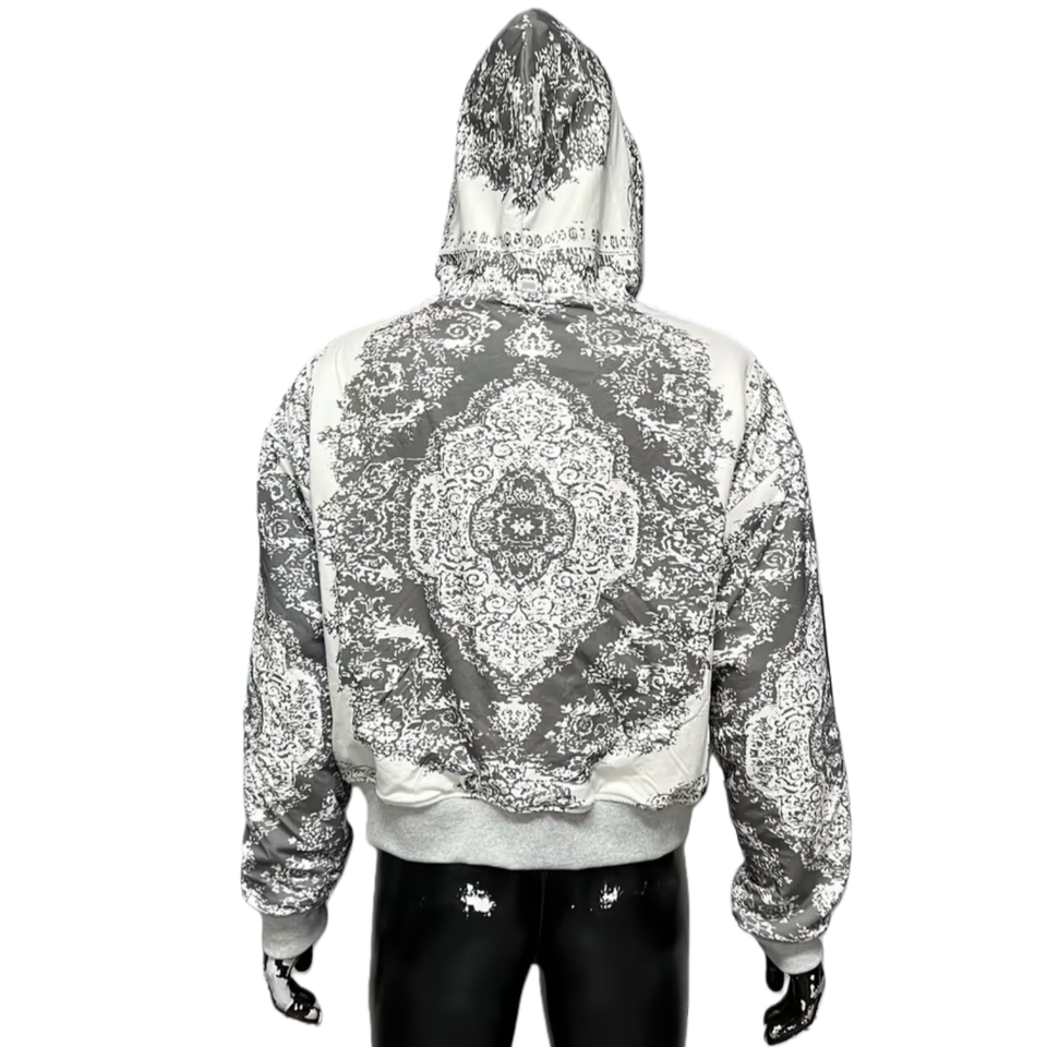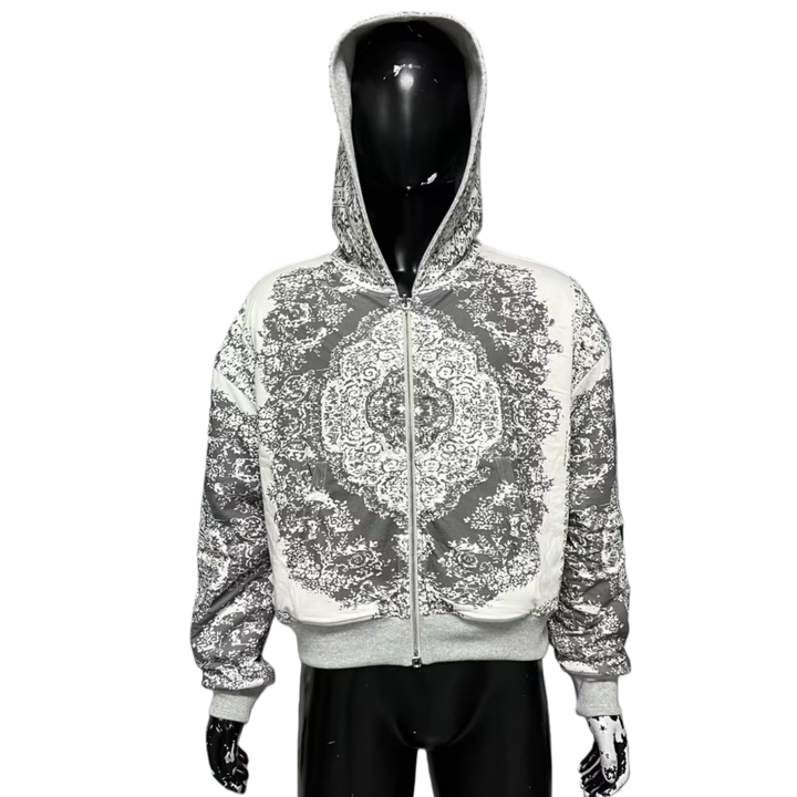 Custom High-quality Heavyweight Cotton Applique Embroidered Hoodie Marble Printed Oversized Loose Zipper Sweatshirt Men's
