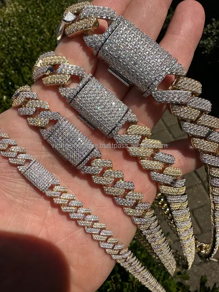 Custom Hip Hop Jewelry Iced Out 14mm 925 Sterling Prong Setting VVS Lab Moissanite Cuban Link Chain Necklace for Man