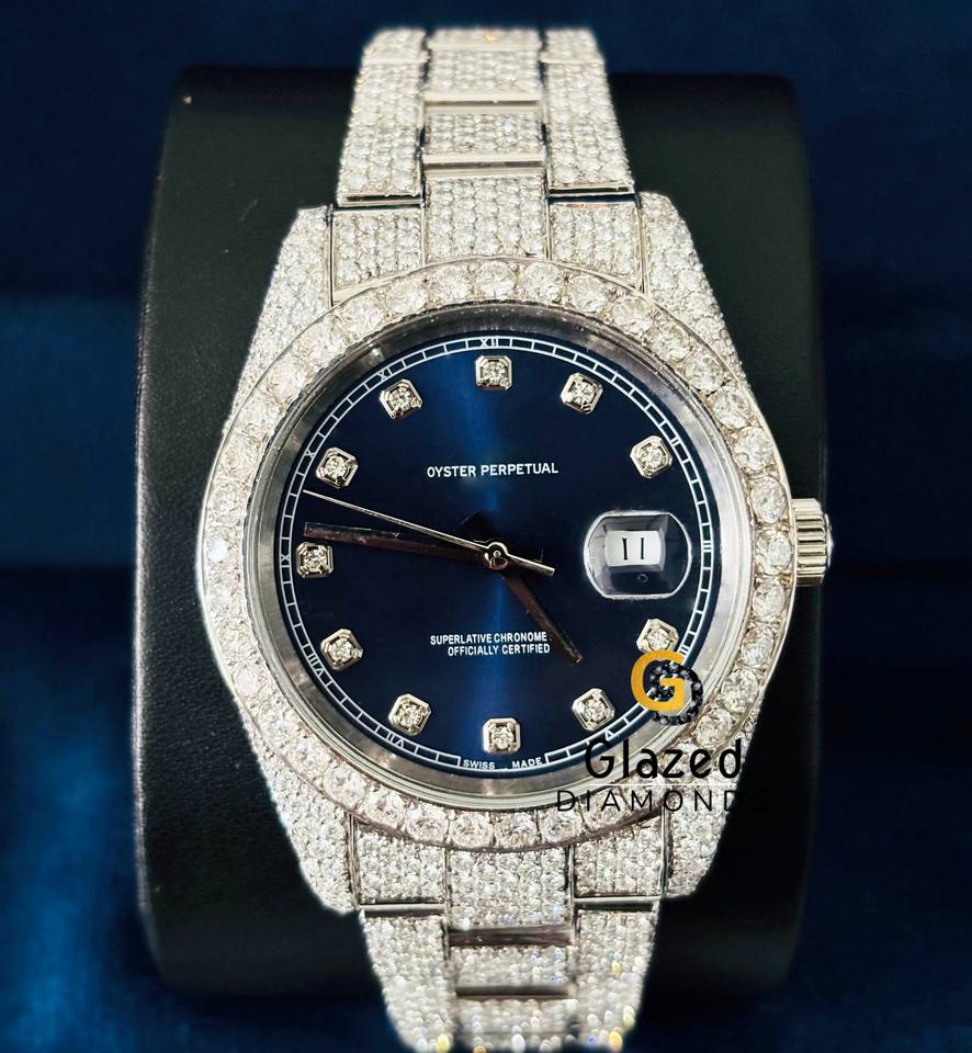 Custom Hip Hop Jewelry Pass Diamond Tester Moissanite Luxury Men's Automatic Blue Custom Dial Wrist Watch With VVS Clarity