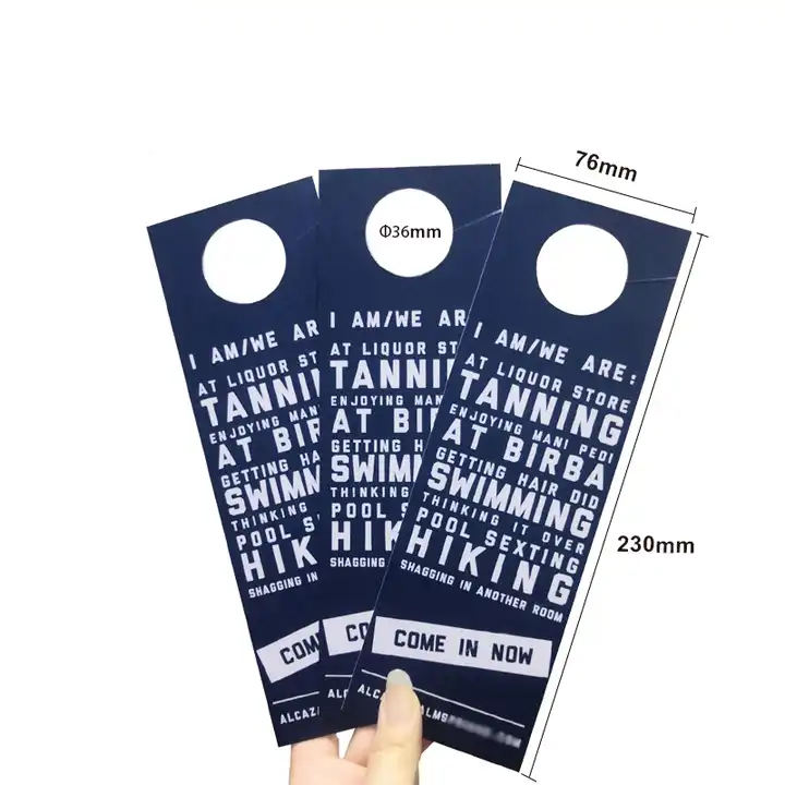 Custom Hole Punch Paper or PVC Plastic Sublimation Printed Rectangle Door Hangers Blank