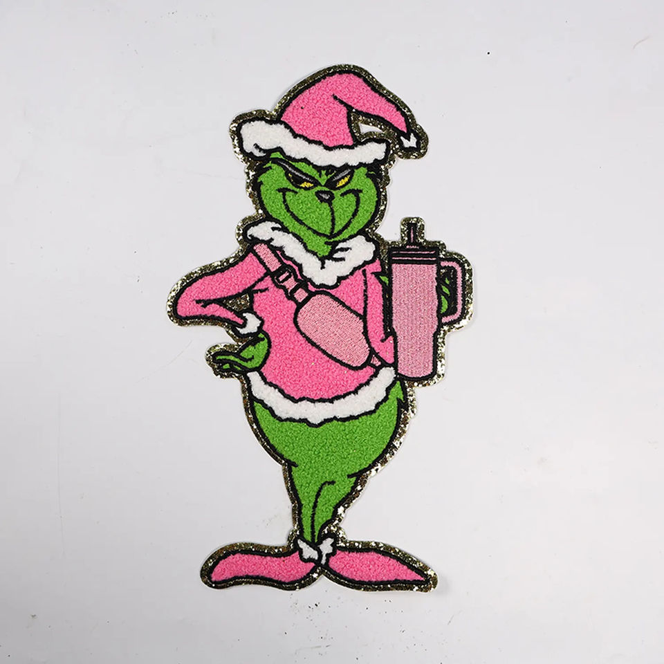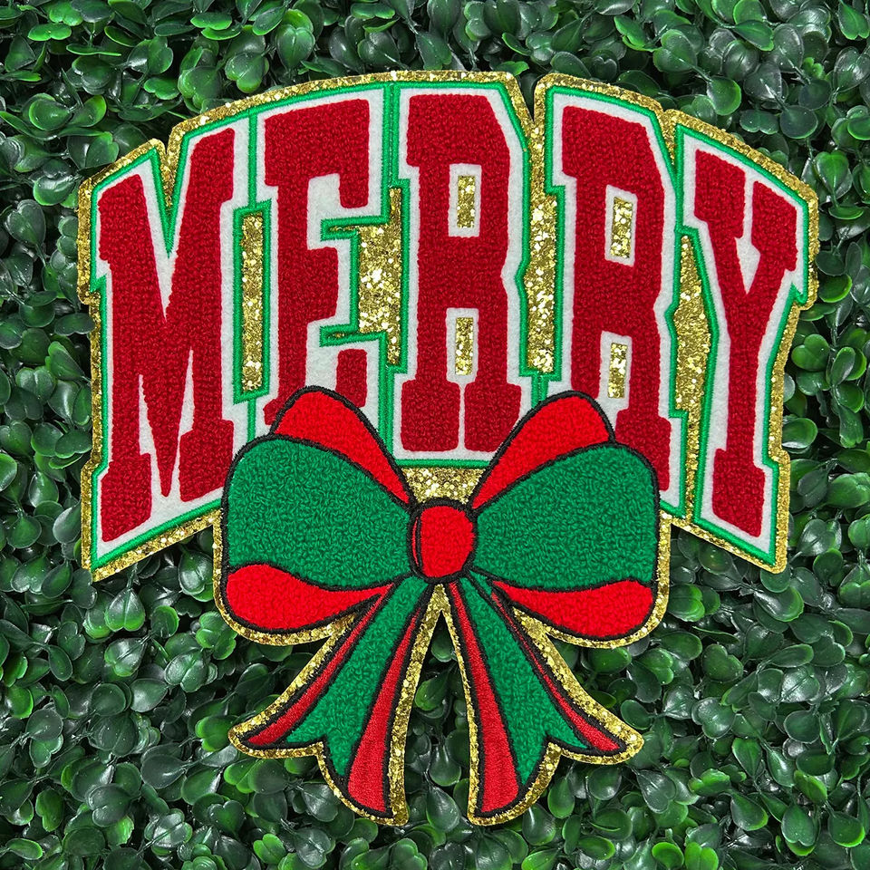 Custom Holly Jolly Bright Chenille Patches Christmas 3D Large Letter Logo Embroidery Iron on Sequin Chenille Patches Designer