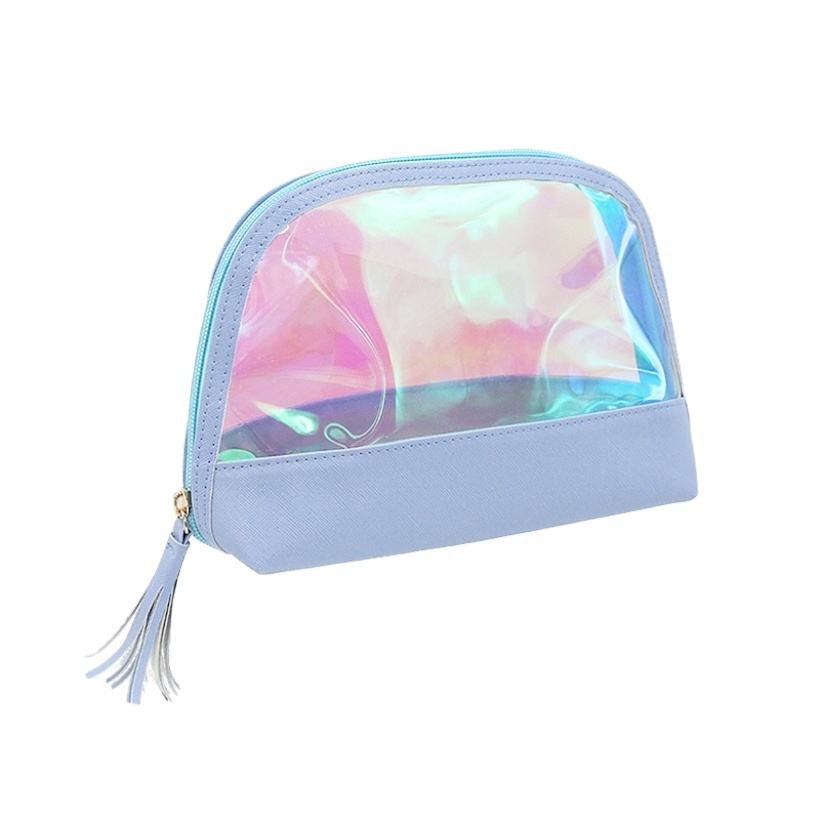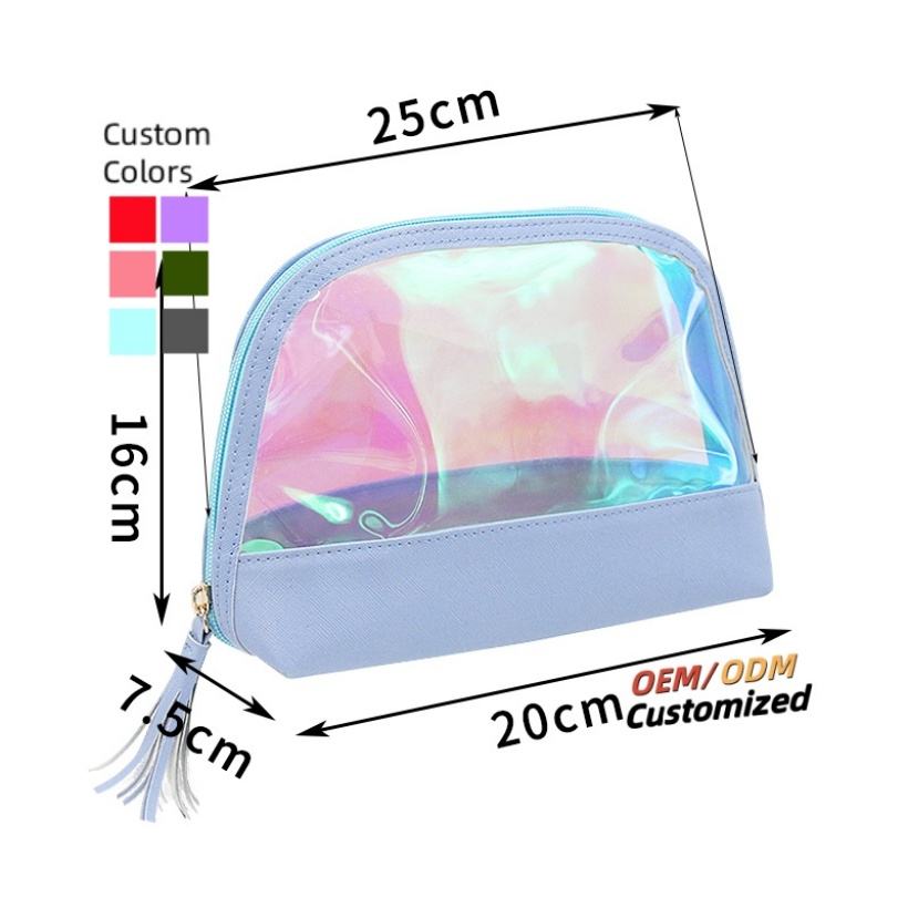 Custom Holographic Make up Bag Portable Waterproof Plastic Pvc Rainbow Cosmetic Makeup Zipper Bag Clear Pouch