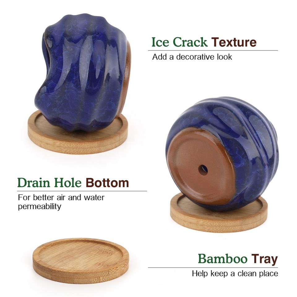 Custom Home Table Decoration Ice Crack Glaze 6 Pcs Pack Garden Ceramic Succulent Cacti Pots Ceramic Planters Flower Plant Pot