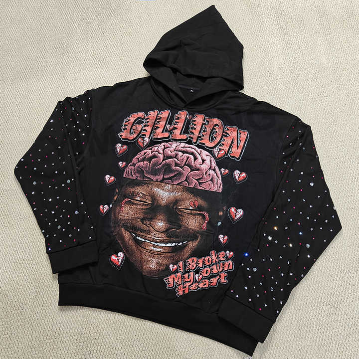 Custom Hoodie Manufacturers Streetwear Graphic Dtg Print French Terry Thick Oversized Rhinestone Mens Pullover Hoodies
