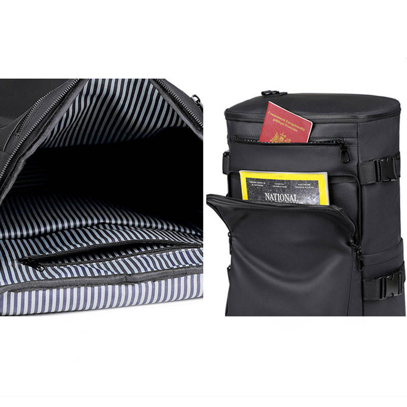 Custom Hot Sale Large Capacity Waterproof Roll Top Laptop Rucksack Backpack Frosted Pu Leather Usb Anti-theft Fea