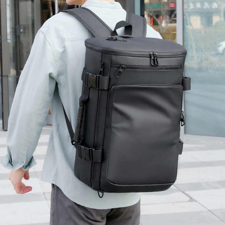 Custom Hot Sale Large Capacity Waterproof Roll Top Laptop Rucksack Backpack Frosted Pu Leather Usb Anti-theft Fea